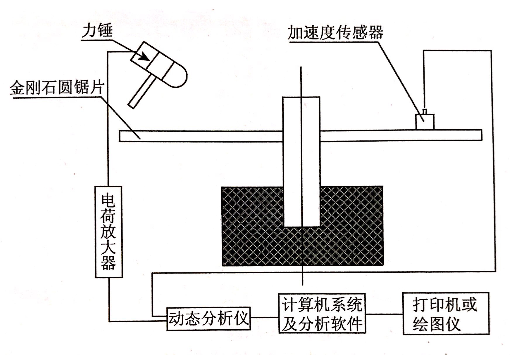在金剛石鋸片模態試驗中根據觀測到的輸入和輸出數據建立系統的數學模型,而且這個數學模型需要按照一定準則,盡可能精確地反映系統的動態特性。