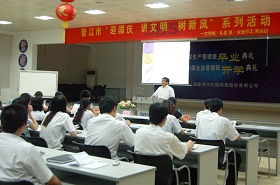 【本報訊】 為慶祝新中國成立60周年,進一步開展文明禮儀宣傳教育,營造和諧人文環境,晉江市委文明辦決定通過文明禮儀進校園、進企業、進社區和圖書漂流等活動,在全市開展“迎國慶、講文明、樹新風”系列活動。我司有幸成為此次企業行活動的首發站。
